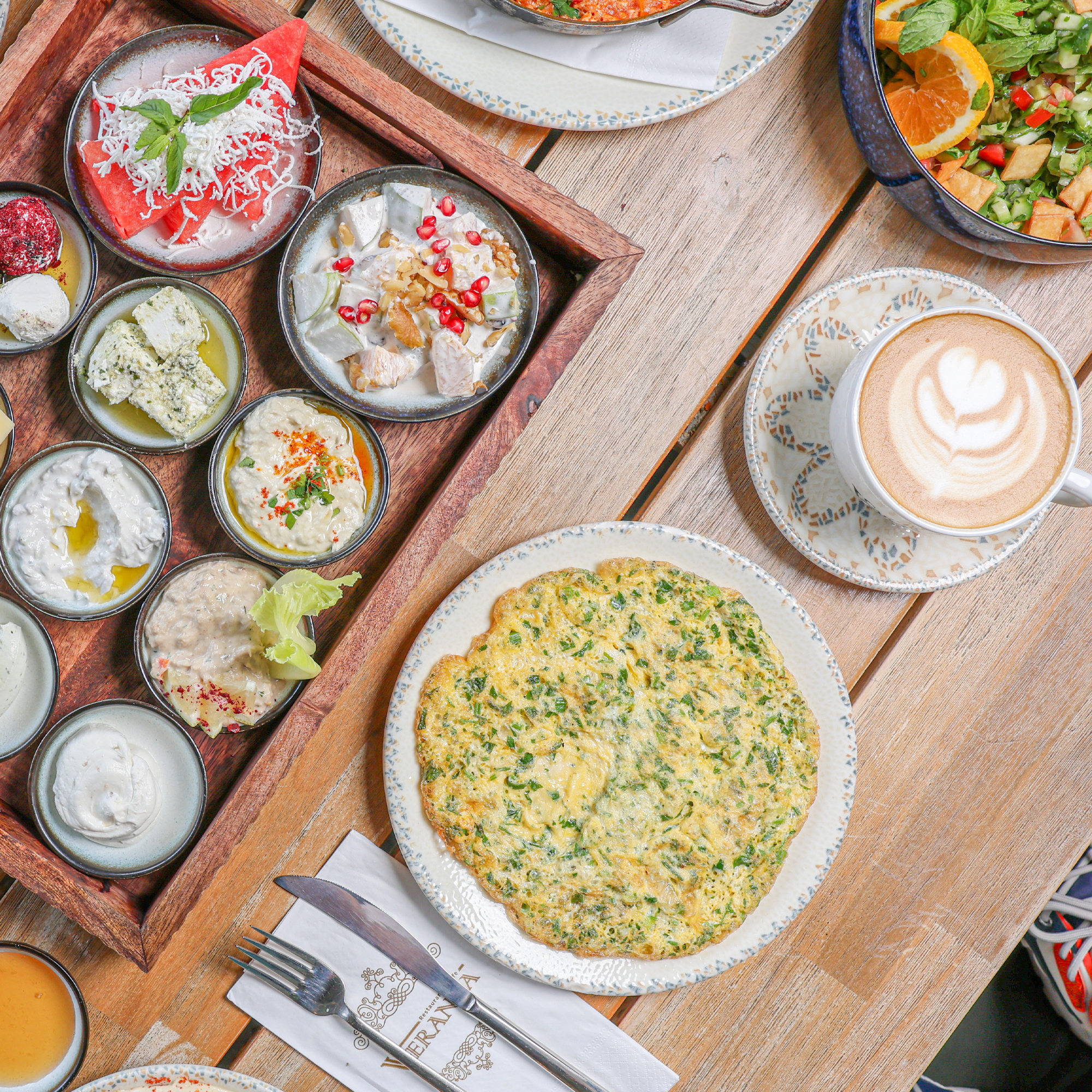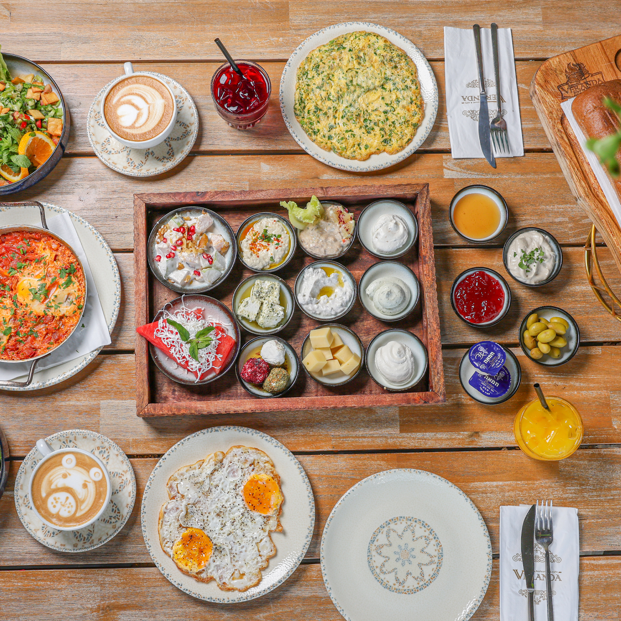 2 חביתות של 2 ביצים לפי בקשתך, ממרחים ומבחר גבינות, סלט קצוף, סלט עלים, לחם הבית, כולל שתיה קרה ושתיה חמה