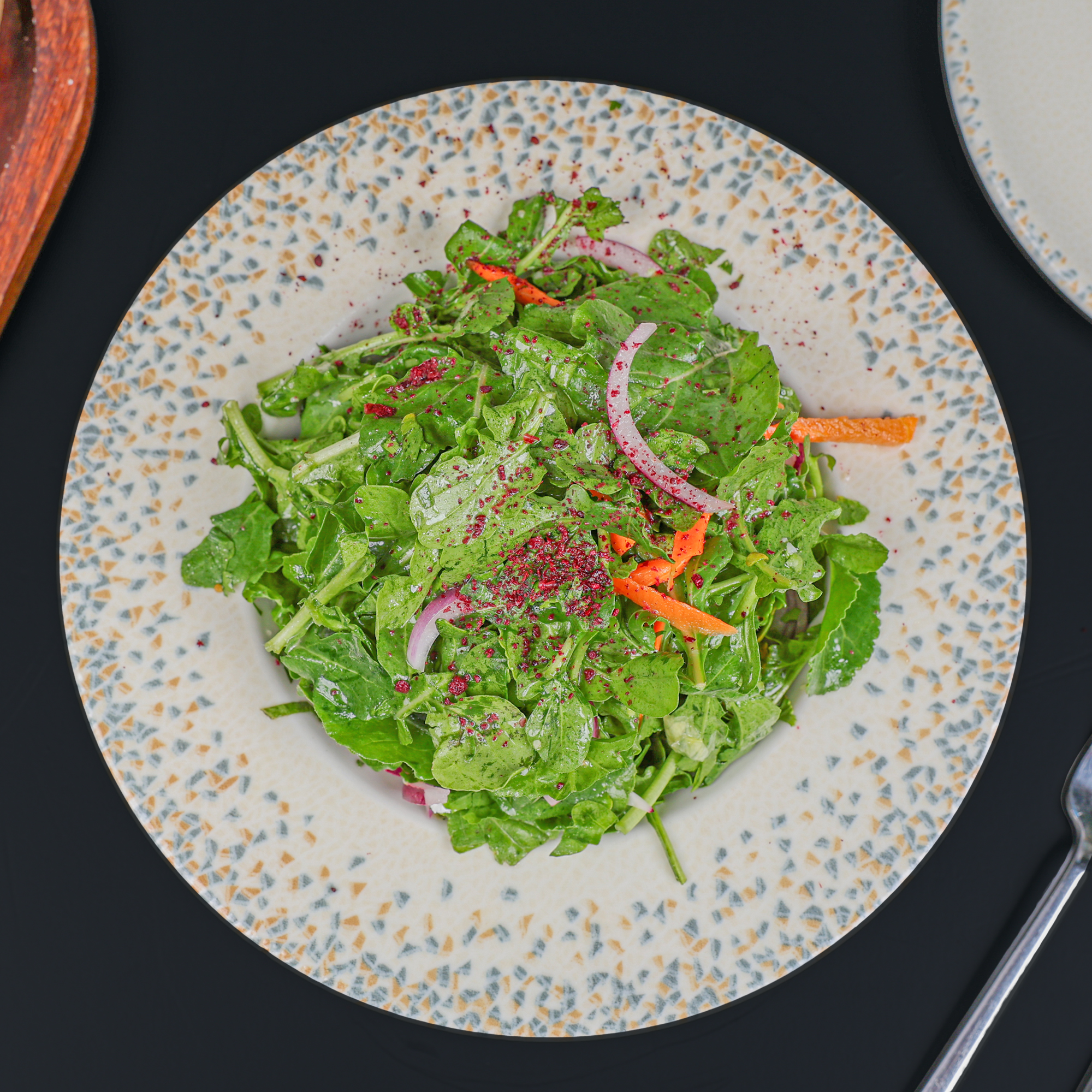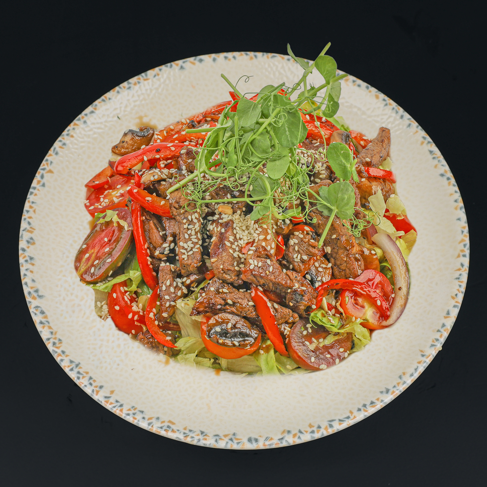 חסה ,מלפפון ,עגבניות, בצל סגול, גמבה, פטריות,